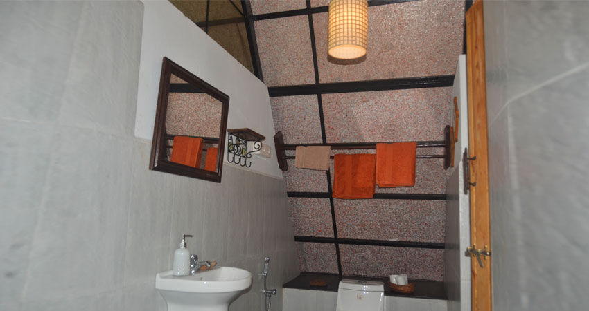 Comfortable and roomy enough for a family with two children. It is built partly in the rock on the slope and has a king-size double bed and a loft in the rock for children to sleep on. To add to the pleasures of the sit-out, there is an expansive balcony opening out to a panoramic view of nature.
